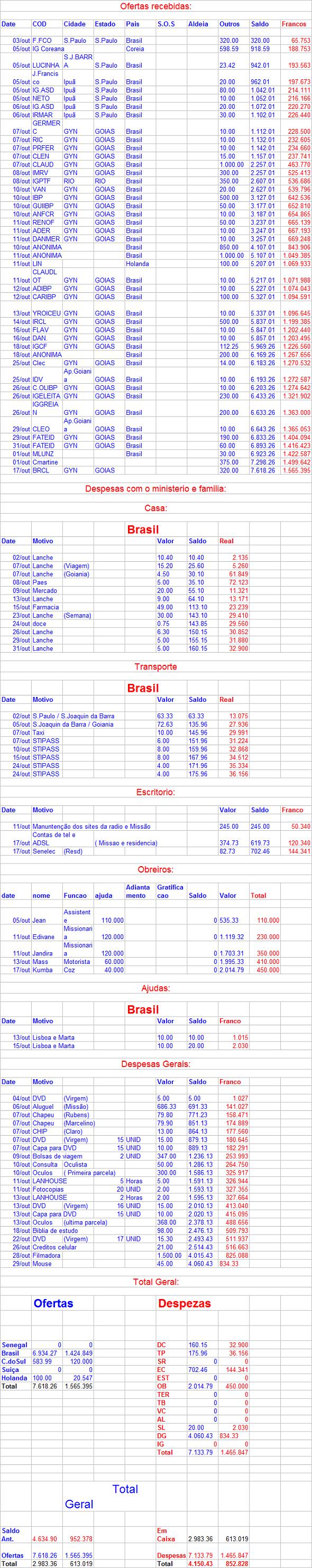 de tudo que recebemos como oferta e no que foi sado essas ofertas. Estamos