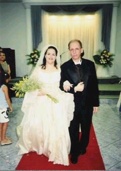 já não agüentava mais... DEUS me traz um vaso Seu.Aquela mulher que vi em Joinville, quando estava tendo minha primeira experiência sobrenatural com o ESPÍRITO SANTO, o SENHOR a trouxe até mim. Uma noite, após exaurir-me diante de DEUS, suplicando Sua misericórdia, e cobrando o cumprimento de Suas promessas, o SENHOR me fala dizendo... “Estou enviando-te tua esposa”. Como tempos atrás me falara, usando uma irmã em profecia, que traria minha esposa de longe, e que não nos casaríamos em São Mateus do Sul, pois minha permanência nesta cidade era por tempo determinado, perguntei ao Senhor... “tudo bem, SENHOR, está me enviando minha esposa... Quanto tempo levará para ela chegar? De onde ela está vindo?” Não tive resposta... No outro dia era sábado (eu trabalho de segunda a sexta)... como estava muito abatido, em desespero, resolvi ir até o escritório onde trabalhava para me distrair navegando pela internet, uma vez que é via rádio, não trazendo grandes despesas para meu “chefe”. Logo que comecei, a Adriana começou a me fazer perguntas no ICQ, onde tinha meu nick “profetacarlos”... Começamos a conversar, expus o que havia acontecido comigo, e começamos a conhecer nosso interior através de nossas conversas. O mais tremendo, é que a medida em que conversávamos, as qualidades que ambos pedíramos a DEUS para existir naquele que seria o vaso para caminhar ao nosso lado, eram confirmadas uma a uma. Começamos a orar a respeito, e pedir que DEUS confirmasse o que estávamos sentindo (pois começou a brotar um profundo amor mútuo em nosso coração). Por último pedimos que DEUS falasse com a Adriana a respeito (não comigo, pois que em determinada noite DEUS me falara que essa era aquela que Ele me prometera). Numa sexta-feira, DEUS confirmou a ela o que Ele estava fazendo em nossas vidas. E mais, como Ele me dissera que minha esposa viria de longe, eu dependia da confirmação específica de DEUS através de um último sinal... ela teria que vir aqui onde moro para nos conhecermos pessoalmente. Sem que ela soubesse desse sinal, DEUS, usando uma irmã de tarde, e o seu pastor de noite, falou exatamente isto a ela... Ela veio... nos conhecemos, DEUS selou nossos corações com o Seu amor... e agora DEUS está encaminhando nosso casamento! Essa é “resumidamente”, minha história. Que DEUS possa ser glorificado em minha vida, e que todos quantos lerem essa síntese, possa saber que DEUS ainda é o mesmo, e que Seus milagres ainda estão à disposição daqueles que amam a DEUS e buscam a Sua vontade. No amor de CRISTO... Carlos Alberto Bächtold... Prisioneiro de JESUS CRISTO! Nos casamos em 22.02.2003 em Foz do Iguaçu, PR, onde residimos até que o SENHOR JESUS nos envie a outro lugar. Volte-se para DEUS agora...