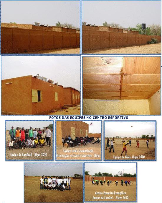 “Senhor, Deus de Israel, não há Deus como tu em cima nos céus nem embaixo na terra@ Tu que guardas a tua aliança de amor com os teus servos que, de todo o coração, andam segundo a tua vontade” – I Reis 8.23 DEUS TEM ALIANÇA COM QUEM TEM ALIANÇA COM ELE Graça e Paz, Gostaríamos com muita alegria de compartilhar o que tem acontecido com relação ao Centro Esportivo no Niger. Vocês que há 3 anos tem acompanhado as notícias da construção, nosso clamor, as lutas... para a glória de Deus pronto o Centro Esportivo, pronto para que possamos ganhar mais almas para Cristo. O Início da construção: Em abril de 2007 iniciamos a construção do Centro Esportivo. Um grande sonho, eram tantos desafios, foram tantas palavras contrárias, muçulmanos contra e até mesmo “cristãos” tentando nos desanimar, falando que isto nunca seria possível. Mais fomos perseverantes. Em 2007 construímos o muro e a guarita. Em