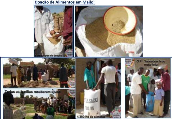 Relatório Missionário Guerreiros de Deus - NIGER – SETEMBRO/2010 – Ano 9 – Mês 09 MATEUS 25.42-45 “Porque tive fome e não me destes de comer; tive sede e não me destes de beber; sendo forasteiro, não me hospedastes; estando nu, não me vestistes; achando-me enfermo e preso não fostes ver-me. E eles lhes perguntarão: Senhor, quando foi que te vimos com fome, com sede, forasteiro, nu, enfermo ou preso, e não te assistimos? Então lhes responderá: Em verdade vos digo que sempre que o deixastes de fazer a um destes pequeninos, a mim o deixastes de fazer.” Mailo é um vilage cerca de 320km de Niamey, há 4 anos temos projetos nesta região, com o Pr Yacoubou como nosso parceiro e representante na região. Neste vilage encontra-se a Escola Kauna, aonde em 2007 construimos uma escola para crianças, chamada Escola Kauna – Aqui nasce a Esperança. 45 crianças são adotadas para estudarem nesta escola todos os anos. Esta é uma região da tribo haussa. É uma região castigada pela seca e miséria. Este ano de 2010, a região sofreu muito, ao ponto das pessoas ficarem com os olhos saltando de tão magras. Começamos a orar junto a equipe e ao Pr Yacoubou e clamar por ajuda – que chegou para a glória de Deus. Doação de Alimentos em Mailo: Foram doados no total 45 sacos de maii, um tipo de milete local de 100 kg cada um. Um total de 4.300kg de alimento. A vila tem cerca de 150 famílias. Fizemos as doações separando para cada família uma quantidade suficiente para as próximas semanas. Todas as famílias do vilage foram beneficiadas, famílias cristãs e famílias não cristas (islâmicas) e todos ficaram muito gratos. A equipe deixou claro que foi Jesus quem enviou a ajuda. Testemunhos: A Equipe fez uma entrevista com duas mulheres que nos disseram estar muito grata com a ajuda que enviamos, porque se olhássemos ao nosso redor, não encontraríamos nada para comer. E que muitos maridos deixaram suas esposas e crianças para ir à procura de comida. Nossa isso fez doer meu coração. Elas disseram também que, muitos tem abandonado o vilarejo devido à escassez de alimentos, elas agradeceram com um sorriso largo no rosto, alias, todos agradeceram – MONGODÊ é a Palavra usada em haussa para agradecer. Agradecimentos:
